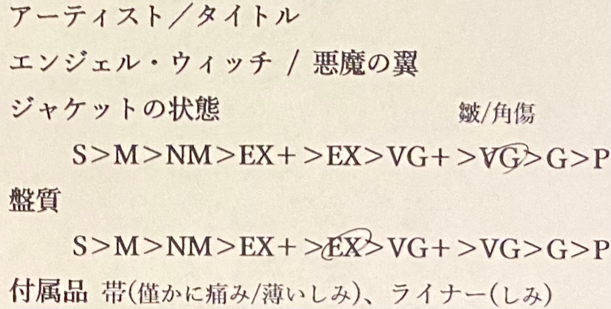 EX (良好) ※軽い擦り傷があり、軽いノイズがあるが良好