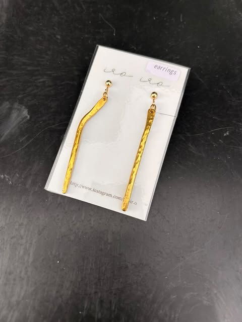 真鍮イヤリング - 3mm棒を叩いて槌目のついた存在感のある揺れるタイプ | iro iro