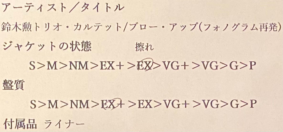 EX (良好) ※軽い擦り傷があり、軽いノイズがあるが良好