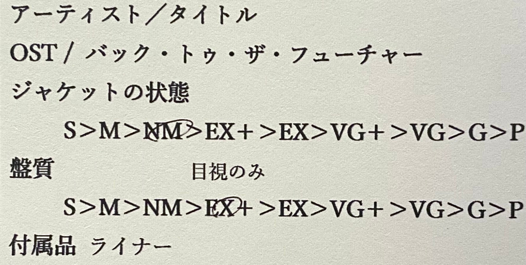 EX (良好) ※軽い擦り傷があり、軽いノイズがあるが良好